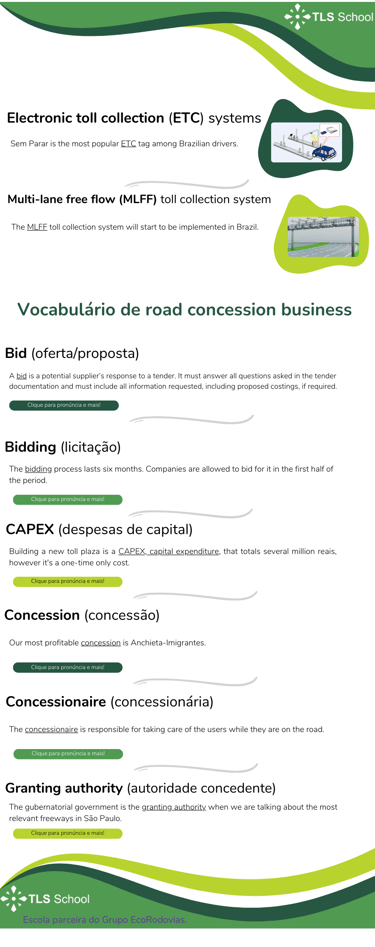 Vocabulário de concessão de rodovias em inglês